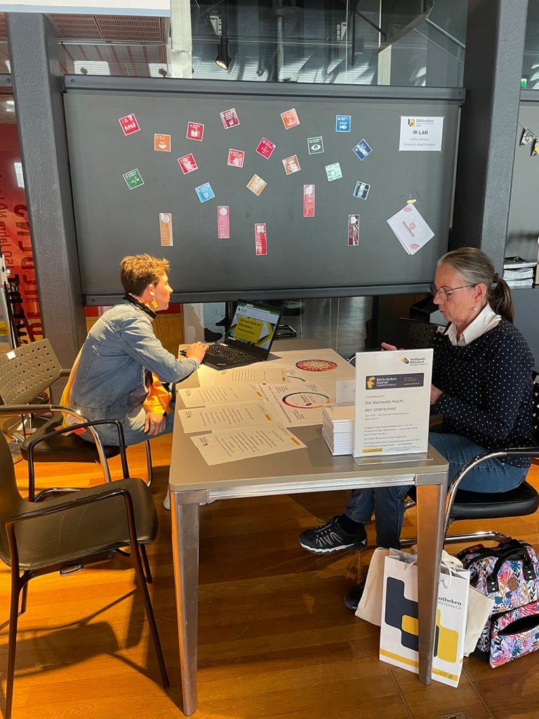 - Networking und Austausch: Neben fachlichen Inputs bot die Veranstaltung zahlreiche Gelegenheiten zum Austausch mit Kolleg:innen und Expert:innen, was den Gemeinschaftsgedanken im Bibliothekswesen stärkte. Vor allem unser gemütliches Messe- Cafe wurde gerne und viel genutzt.