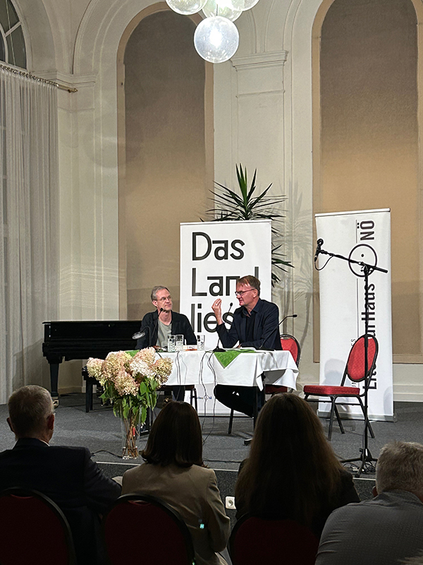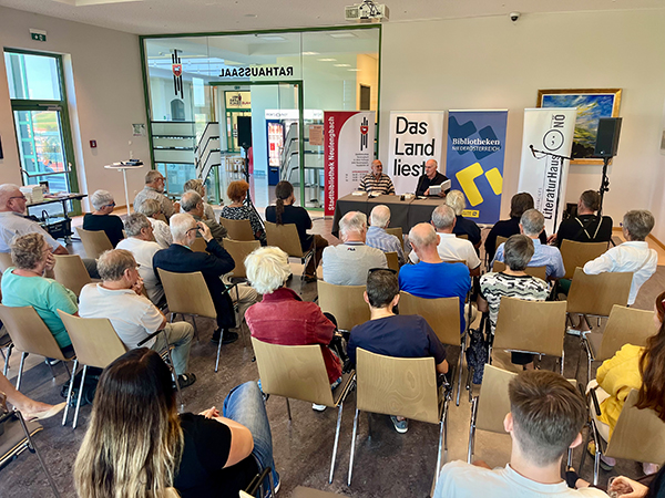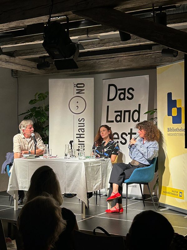 DAS LAND LIEST – Unsere Kooperation mit Literaturhaus NÖ – fand heuer von 15. bis 25. September bereits zum 5. Mal in ausgewählten niederösterreichischen Bibliotheken statt. Quer durchs Bundesland wurde gelesen, erzählt, gesprochen, diskutiert. Begleitet wurden die Autor:innen auf dieser spannenden literarischen Reise von namhaften Moderator:innen, Historiker:innen sowie Medienexpert:innen.